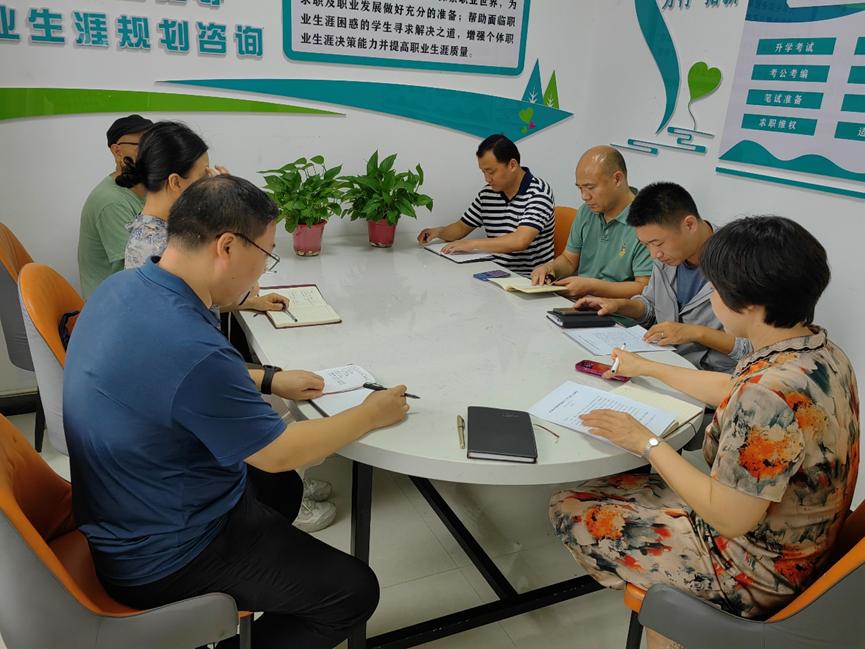 招生科科长任卫德、就业科科长杜可、双创公司科长杨冯圆对假期工作进行总结。暑假期间圆满完成2024年招生录取工作;完成就业数据核查上报及省就业中心实地核查工作;完成双创公司办公搬迁及竞赛项目推荐工作。